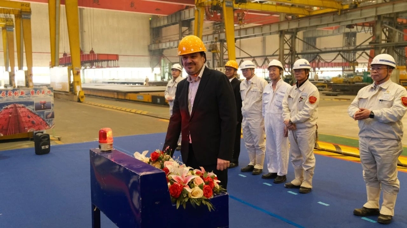 人间四月芳菲盛,扬帆起航正当时。在这春意盎然的四月,大连中远海运川崎于4月9日同时举办了三艘船舶(DE161/162/165)的开工仪式,创造了公司建厂以来同时开工船舶数量之最的新纪录。仪式上,船东、船级社、船厂三方代表齐聚一堂,随着开工按钮的落下,切割设备精准启动,现场响起热烈的掌声,郑重宣告本系列项目进入全面建造阶段。 本次开工建造的三艘船舶是大连中远海运川崎为欧洲某知名船东建造的6.4万载重吨散货船。多年来,公司与该船东秉持着相互信任、互利共赢的理念,打造了一系列技术先进、性能卓越的高端船舶,既为船东带来了显著的经济效益,也巩固了大连中远海运川崎在全球造船市场的领先地位。每一艘交付的船舶都凝聚着双方的智慧与汗水,也助推了双方合作关系的不断深化。 本次三船同建,再次彰显了船东对大连中远海运川崎设计建造能力、生产工艺及综合管理能力的高度认可。从最初的机缘合作,到如今的战略携手,大连中远海运川崎也将凭借自身的技术优势和创新能力,为船东打造出更具市场竞争力的船舶产品。 展望未来,大连中远海运川崎将以此系列项目为新起点,不断探索行业发展新趋势,持续提升船舶建造质量和效率,全力服务好全球船东客户,为全球航运业的高质量发展贡献更大的力量。 | |||||||